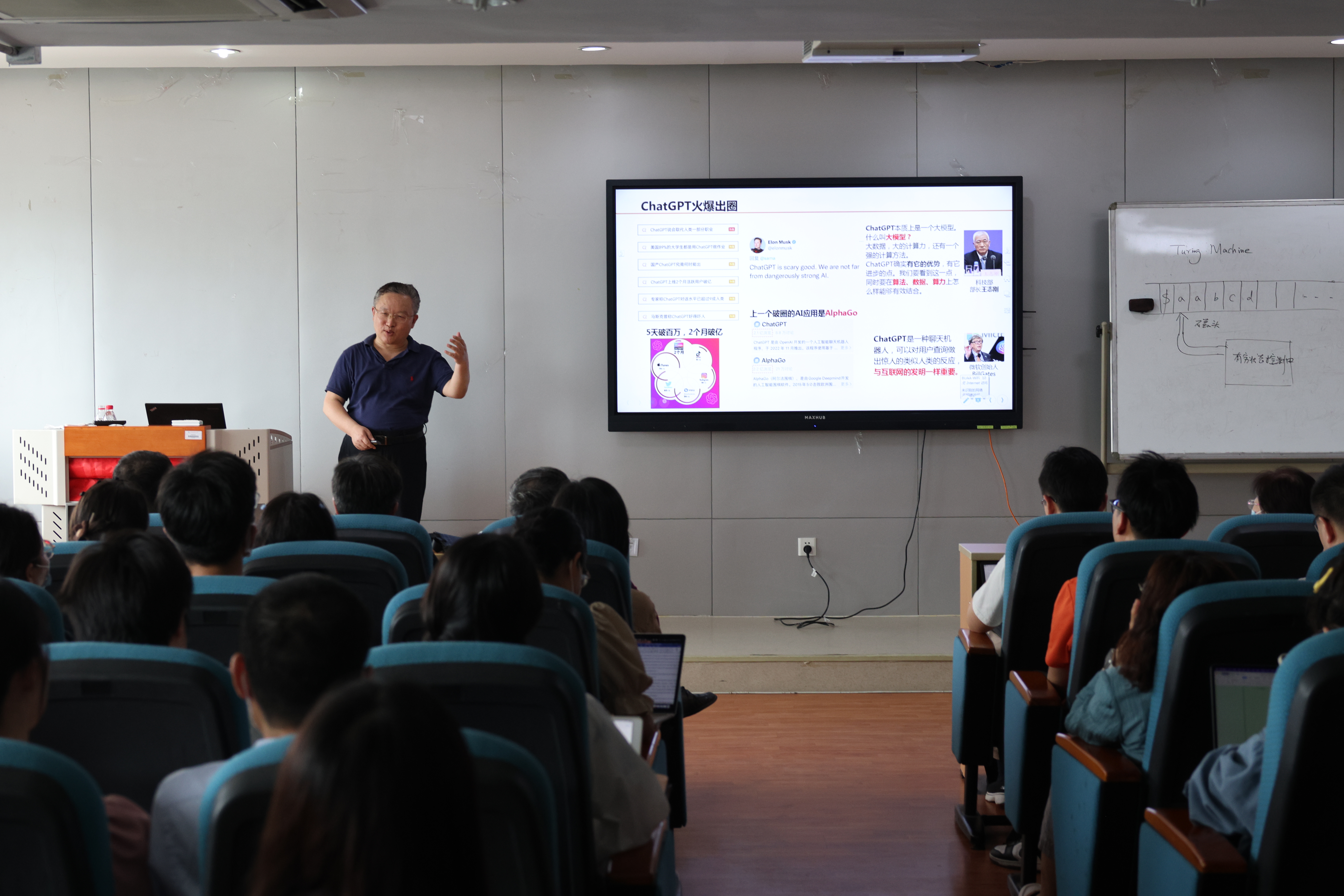 在学习贯彻习近平新时代中国特色社会主义思想主题教育中,外国语公司党委坚持把理论学习、调查研究、推动发展、检视整改有机融合、一体推进,注重将主题教育学习成果转化为高质量发展的新成效。为进一步科学凝练和谋划外国语言文学学科未来发展方向,落实“精品文科”建设要求,扎实推进新文科建设,结合校院两级管理体制改革试点工作,近日,来利国际旗舰厅邀请计算机公司李舟军教授作题为“ChatGPT:背景、技术及应用”的专题报告。外国语公司党委委员、学术委员会主任卫乃兴教授主持报告,公司班子成员和广大教师、员工代表参加活动。