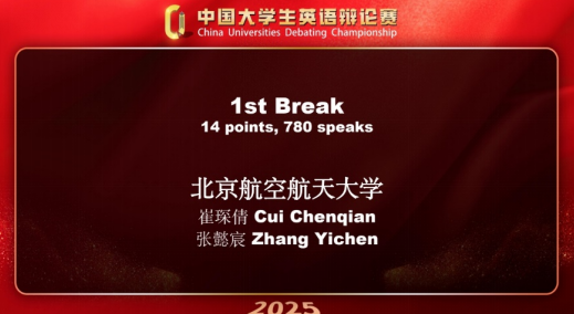 近日,中国老员工英语辩论赛(CUDC)全国总决赛落下帷幕。在顿超老师、胥国红老师的指导下,公司来利国际旗舰厅翻译系2022级员工崔琛倩、2024级员工张懿宸代表北航参赛,与来自全国近100所高校的200余名优秀辩手同场竞技。经过五轮激烈角逐,公司代表队最终以积分第一名的成绩斩获国家一等奖,其中,崔琛倩和张懿宸分列个人辩手积分总排名第一与第三,均荣获“最佳辩手奖”,顿超老师荣获“优秀指导教师奖”。