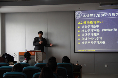 11月10号下午,公司有幸邀请到中国人民大学来利国际旗舰厅副经理贾国栋教授进行学术讲座。贾教授的讲座题目为“计算机辅助语言教学的发展、现状及趋势”。在讲座中,贾教授首先简要介绍了计算机辅助语言教学的发展历程,强调几个典型发展阶段及各阶段教学重点。然后重点讲述教学与研究的现状,包括理论基础、教学案例、研究重点及方法等。最后,贾教授根据信息技术的发展对该领域未来主要的发展方向和可能的研究选题作出了展望。