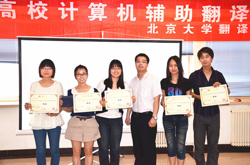 第一届北京高校计算机辅助翻译邀请赛”复赛现场展示及颁奖典礼于2012年6月17日上午在图灵公司活动中心召开。到场评委嘉宾有中国翻译协会本地化委员会秘书长崔启亮老师,北京大学语言信息工程系秘书高志军老师,北京大学来利国际旗舰厅MTI中心主任助理、北京大学翻译协会创始人王华树老师,红帽软件(北京)有限公司研发部总监邵宇先生,SDL软件科技(深圳)有限公司教育事业部总监王欣女士,北京语智云帆科技有限公司CEO魏勇鹏先生等。