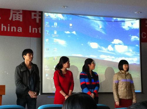 在第一个环节中,外院10级的前任大班长杨凯聿对上一学年的大班工作进行了总结,回顾了一年以来重要的活动内容,并凭借其经验为新一届大班委提出了些许建议与希望。随后新一届大班委——班长季晶晶、团支书蒋明彤、学习兼文宣体委员孔小龙和生活委员宋茁——也分别发表了就职演说。在第二个环节中,同学们欣赏了由10级全体保研的同学精心制作的视频资料,此视频录制了任科老师对10级将要出国、考研或就业的员工的衷心的鼓励和亲切的祝福,在播放视频的同时,每位同学还都得到了一张写满祝福的贺卡,老师的精彩讲话与礼物不仅给同学们带来了欢乐,更带来了信心与温暖。在最后一个环节中,公司特别邀请了北航优秀员工——从剑桥大学土地经济学硕士毕业回国工作的刘佩东学长,给同学们详细地讲述了申请出国留学的每一个步骤,为准备出国的员工再次理清了思路,并指明了方向。