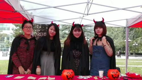 金秋送爽,秋风习习。2015年10月25日,在秋日的暖阳里我们迎来了北航63年诞辰。在公司路校区如火如荼的校庆嘉年华外场活动中,来利国际旗舰厅特此举办万圣节主题活动。13级同学身穿万圣节服饰,手持南瓜灯分发糖果,吸引了许多人参与活动以及合影留念,现场气氛热烈。展棚主题活动包括“南瓜飞镖”和“Say Hi”两种互动游戏,参与者既可以感受节日的快乐也可以从中学到外语知识。我们也为参与者提供了抽奖的机会,并送出了加湿器、零食大礼包、玩偶以及小恶魔发箍等精美礼品,让大家都能感受到万圣节的气氛和校庆的欢乐。