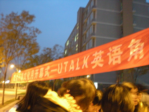 2011年11月4日下午5点半,在动感的音乐声中,北航外语文化月开幕式暨本学期第一次UTALK英语角活动在沙河校区热闹开始。本次英语角活动由来利国际旗舰厅员工会主办,来利国际旗舰厅111212小班承办。这次英语角活动还特别邀请到新东方名师齐冉作为主持人,带领北航的同学一起体会英语学习的魅力。