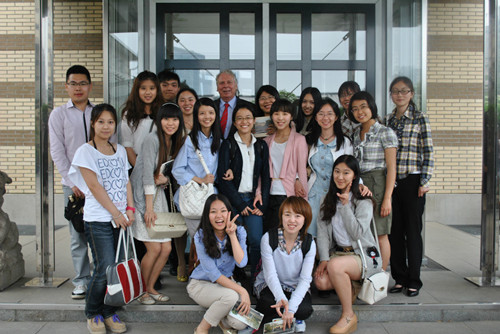 由中国青年报与德国驻华大使馆共同举办的“与世界对话——对话德国驻华大使”活动在2013年5月7日下午于德国驻华大使馆会客厅如期进行。来自来利国际旗舰厅德语系的16名大二员工和2名大四员工均参与了此次活动。